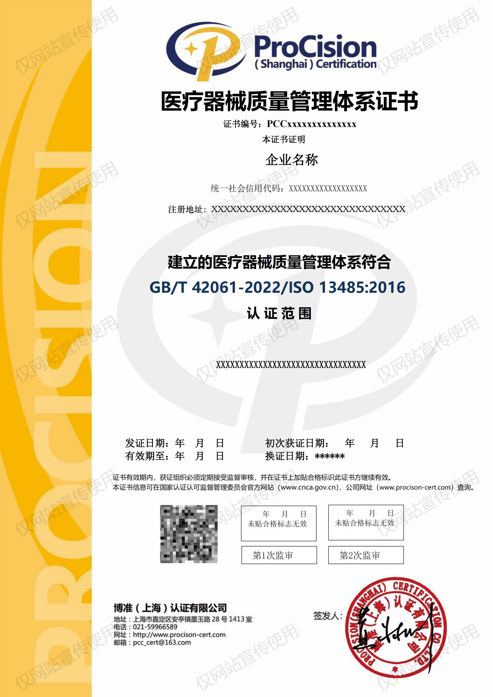 PCC 医疗器械质量管理体系证书 GBT 42061-2022IS0 134852016